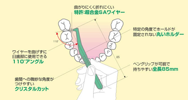歯間に挿入しやすい110°アングルと持ちやすいハンドル。