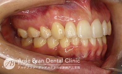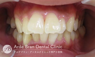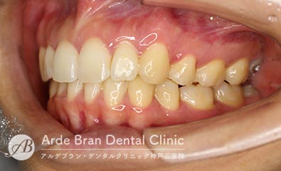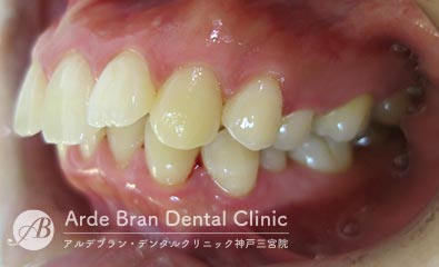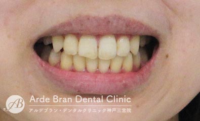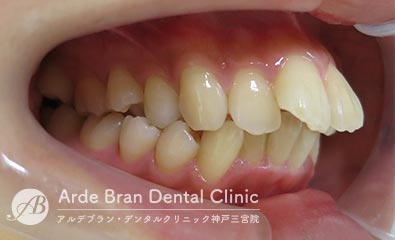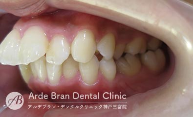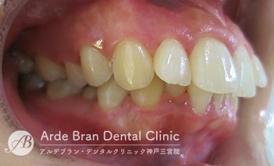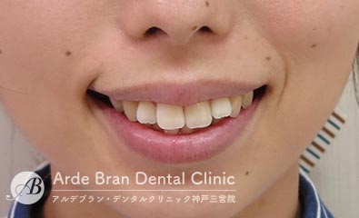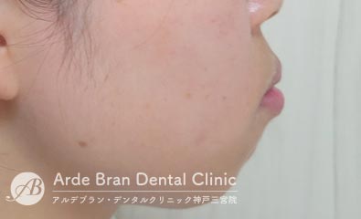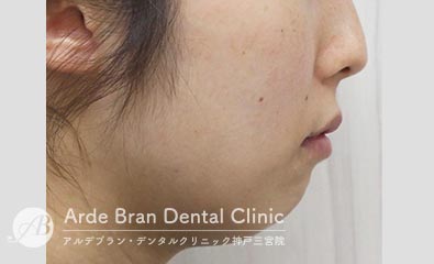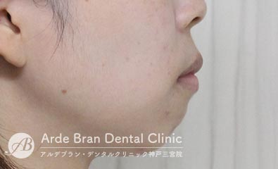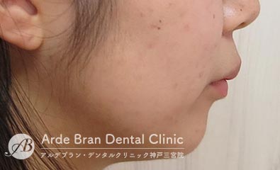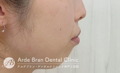 横顔では、Eライン(鼻先と顎先を結んだライン)からの突出が目立ちやすく、口元の出具合を気にして来院される方が多い症状です。三宮では、大人の女性からのご相談が多い傾向があります。