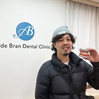 目立つ上顎は裏側矯正器具を使用し、下顎は目立たない白いワイヤーと透明な器具を表側に装着する矯正治療です。