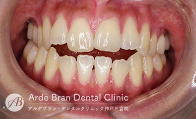 奥歯で咬みこんだ時に、前歯にスペースがみられる状態です。
